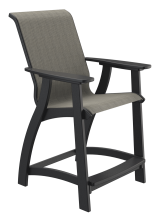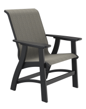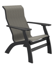 Our sling chairs are built with a metal frame that holds the fabric tightly in place. The metal frame is then fastened to the poly chair frame. See color options for fabric, metal and poly. Available in all colors.