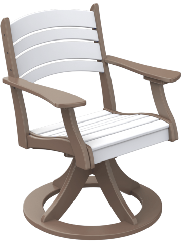 With superior design and quality build the Shoreline Dining Swivel Arm Chair is manufactured with marine poly. All of the parts are CNC machined to give the perfect cut and fit on each piece. We use mortise and tenon joining for a sturdier and more reliable construction. Where possible, instead of screws and bolts that are visible we use cam inserts and hidden bolts. The swivel components are manufactured out of stainless steel material.