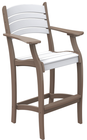 With superior design and quality build the Shoreline Bar Arm Chair is manufactured with marine poly. All of the parts are CNC machined to give the perfect cut and fit on each piece. We use mortise and tenon joining for a sturdier and more reliable construction. Where possible, instead of screws and bolts that are visible we use cam inserts and hidden bolts.