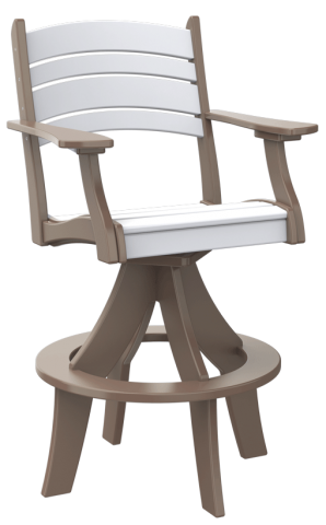 The Shoreline Bar Swivel Arm Chair is available in all the colors. Choose one color for the whole chair or an accent color for the arms and legs. A logo engraved into a color core back makes it uniquely yours!
